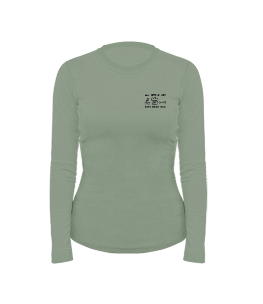 Dámské bavlněné tričko s dlouhým rukávem pro ženy s potiskem 1056 BIKE BEER BED v barvě OLIVA