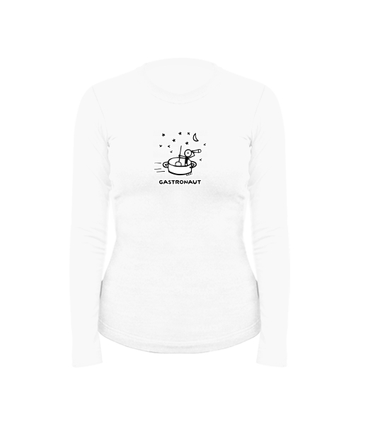 Dámské bavlněné tričko s dlouhým rukávem pro ženy s potiskem 1058 GASTRONAUT v barvě WHITE