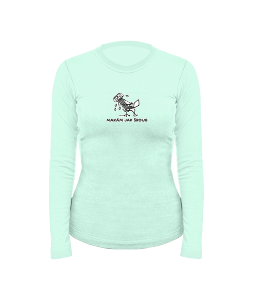 Dámské bavlněné tričko s dlouhým rukávem pro ženy s potiskem 1061 MAKÁM JAK ŠROUB v barvě MINT
