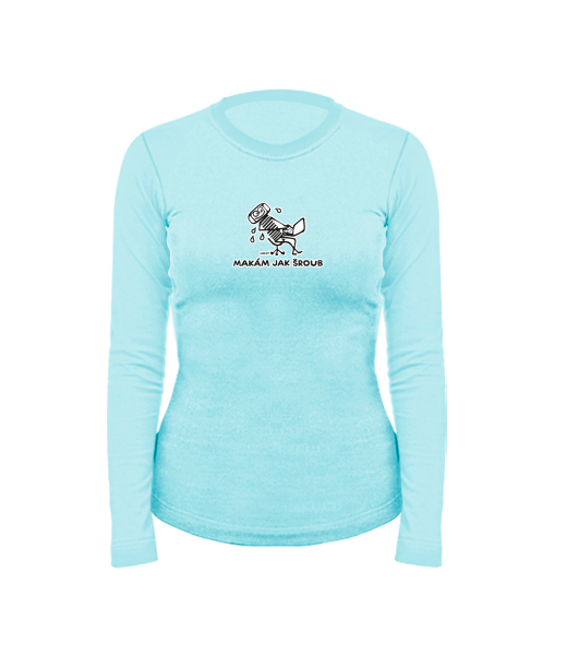 Dámské bavlněné tričko s dlouhým rukávem pro ženy s potiskem 1061 MAKÁM JAK ŠROUB v barvě PASTEL BLUE