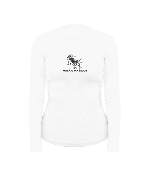Dámské bavlněné tričko s dlouhým rukávem pro ženy s potiskem 1061 MAKÁM JAK ŠROUB v barvě WHITE