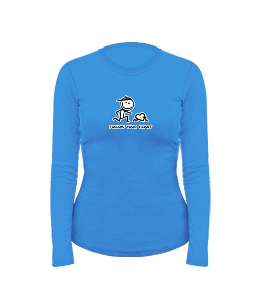 Dámské bavlněné tričko s dlouhým rukávem pro ženy s potiskem 1063 FOLOW YOUR HEART v barvě CAPRI BLUE