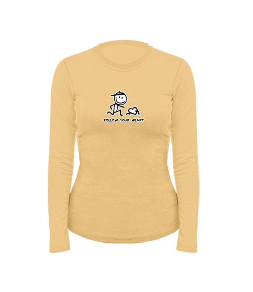 Dámské bavlněné tričko s dlouhým rukávem pro ženy s potiskem 1063 FOLOW YOUR HEART v barvě MUSTARD