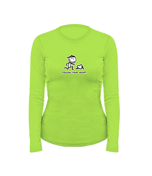 Dámské bavlněné tričko s dlouhým rukávem pro ženy s potiskem 1063 FOLOW YOUR HEART v barvě PARROT GREEN