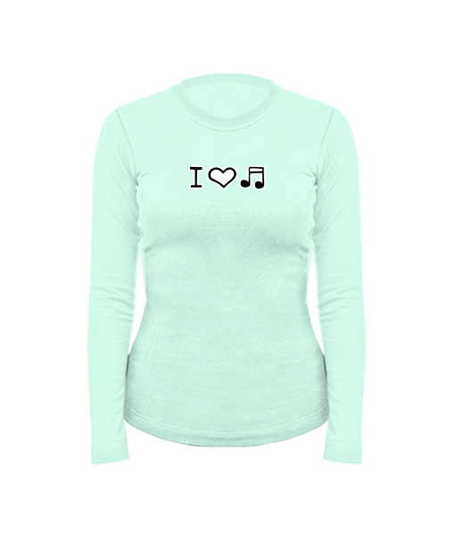Dámské bavlněné tričko s dlouhým rukávem pro ženy s potiskem 1067 I LOVE MUSIC v barvě MINT