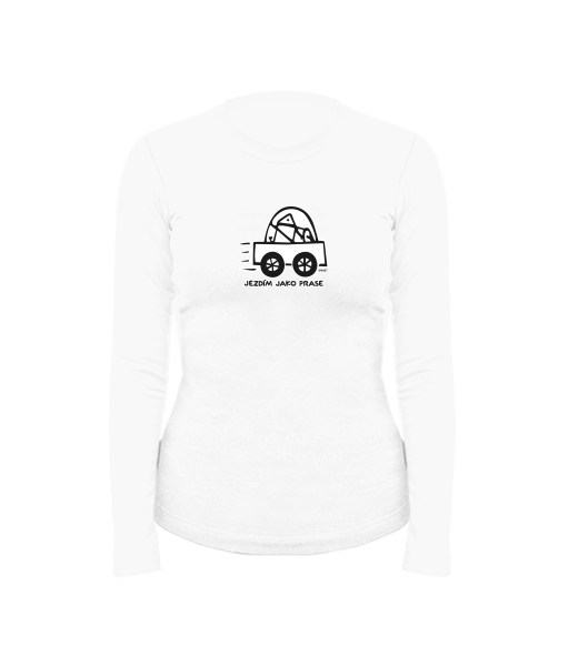 Dámské bavlněné tričko s dlouhým rukávem pro ženy s potiskem 1072 JEZDÍM JAKO PRASE v barvě WHITE