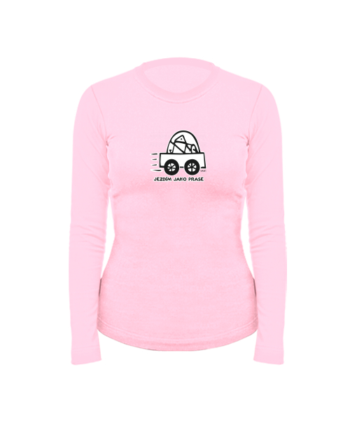 Dámské bavlněné tričko s dlouhým rukávem pro ženy s potiskem 1072 JEZDÍM JAKO PRASE v barvě BABY PINK