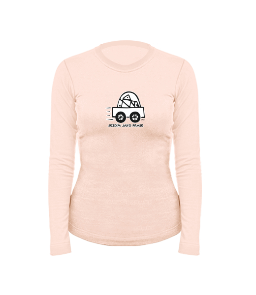 Dámské bavlněné tričko s dlouhým rukávem pro ženy s potiskem 1072 JEZDÍM JAKO PRASE v barvě CAPPUCINO