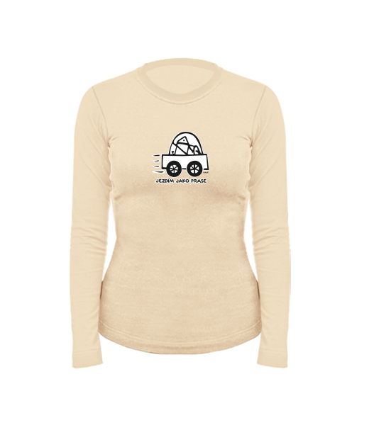 Dámské bavlněné tričko s dlouhým rukávem pro ženy s potiskem 1072 JEZDÍM JAKO PRASE v barvě CARAMEL