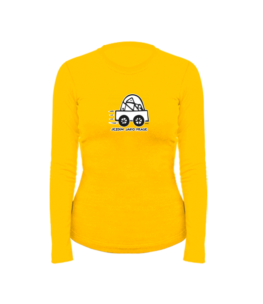 Dámské bavlněné tričko s dlouhým rukávem pro ženy s potiskem 1072 JEZDÍM JAKO PRASE v barvě GOLDEN CREAM