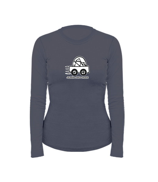 Dámské bavlněné tričko s dlouhým rukávem pro ženy s potiskem 1072 JEZDÍM JAKO PRASE v barvě GRAY INK