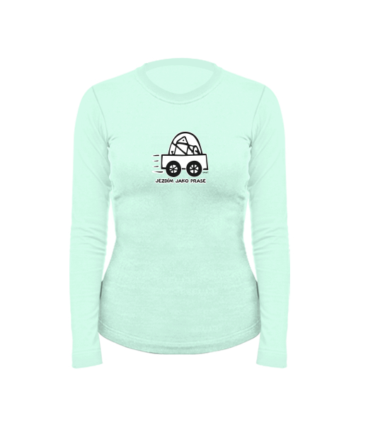 Dámské bavlněné tričko s dlouhým rukávem pro ženy s potiskem 1072 JEZDÍM JAKO PRASE v barvě MINT