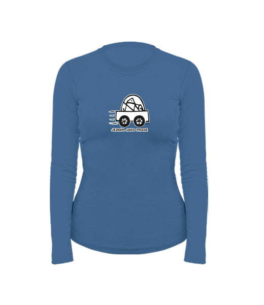 Dámské bavlněné tričko s dlouhým rukávem pro ženy s potiskem 1072 JEZDÍM JAKO PRASE v barvě MOONLIGHT BLUE