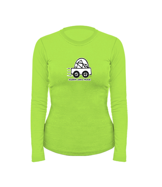 Dámské bavlněné tričko s dlouhým rukávem pro ženy s potiskem 1072 JEZDÍM JAKO PRASE v barvě PARROT GREEN