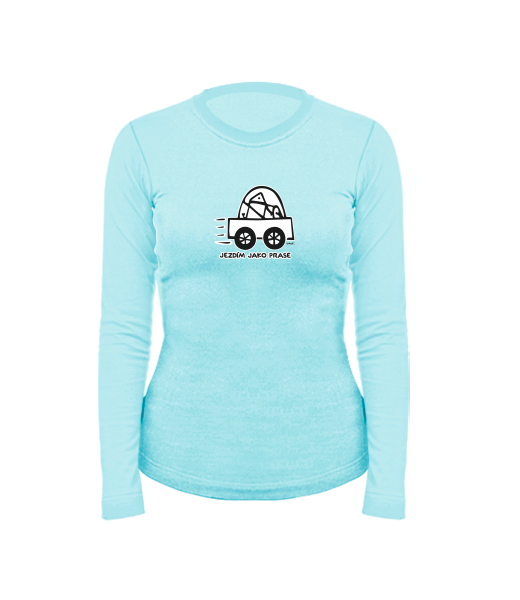 Dámské bavlněné tričko s dlouhým rukávem pro ženy s potiskem 1072 JEZDÍM JAKO PRASE v barvě PASTEL BLUE