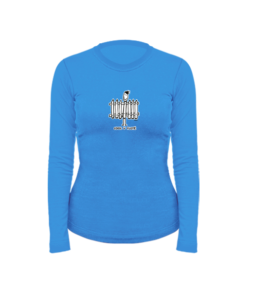 Dámské bavlněné tričko s dlouhým rukávem pro ženy s potiskem 1073 COOL V PLOTĚ v barvě CAPRI BLUE