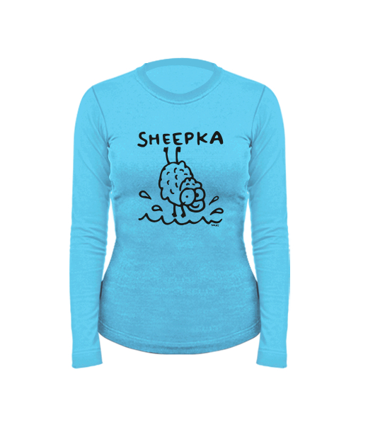 Dámské bavlněné tričko s dlouhým rukávem pro ženy s potiskem 1077 SHEEPKA v barvě BLUE ATOLL
