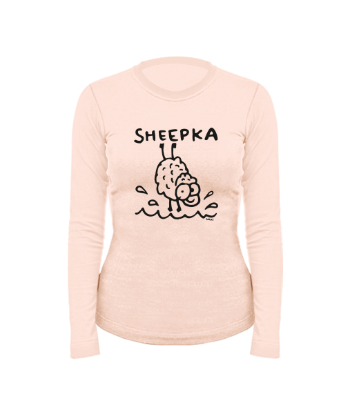 Dámské bavlněné tričko s dlouhým rukávem pro ženy s potiskem 1077 SHEEPKA v barvě CAPPUCINO