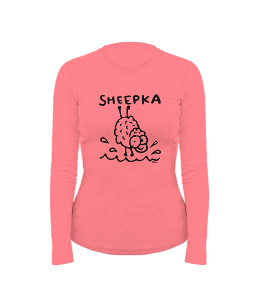 Dámské bavlněné tričko s dlouhým rukávem pro ženy s potiskem 1077 SHEEPKA v barvě LOSOSOVA