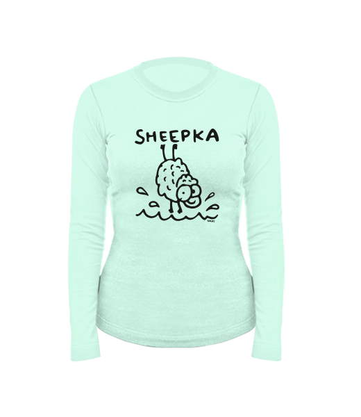 Dámské bavlněné tričko s dlouhým rukávem pro ženy s potiskem 1077 SHEEPKA v barvě MINT