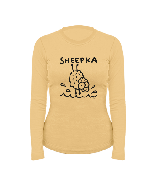 Dámské bavlněné tričko s dlouhým rukávem pro ženy s potiskem 1077 SHEEPKA v barvě MUSTARD