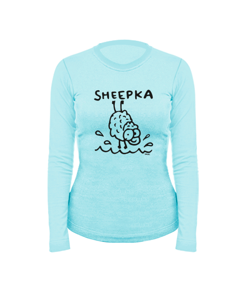 Dámské bavlněné tričko s dlouhým rukávem pro ženy s potiskem 1077 SHEEPKA v barvě PASTEL BLUE