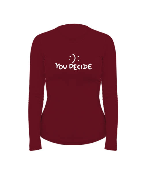Dámské bavlněné tričko s dlouhým rukávem pro ženy s potiskem 1078 YOU DECIDE v barvě DARK RED