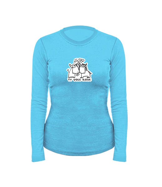 Dámské bavlněné tričko s dlouhým rukávem pro ženy s potiskem 1089 TY VOLE I LOVE v barvě BLUE ATOLL
