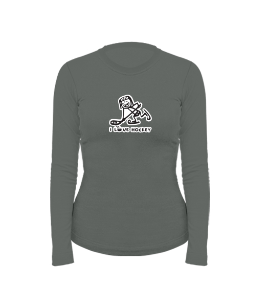 Dámské bavlněné tričko s dlouhým rukávem pro ženy s potiskem 1100 I LOVE HOCKEY v barvě DARK GRAY