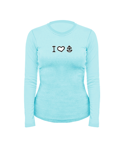 Dámské bavlněné tričko s dlouhým rukávem pro ženy s potiskem 1102 I LOVE YACHTING v barvě PASTEL BLUE