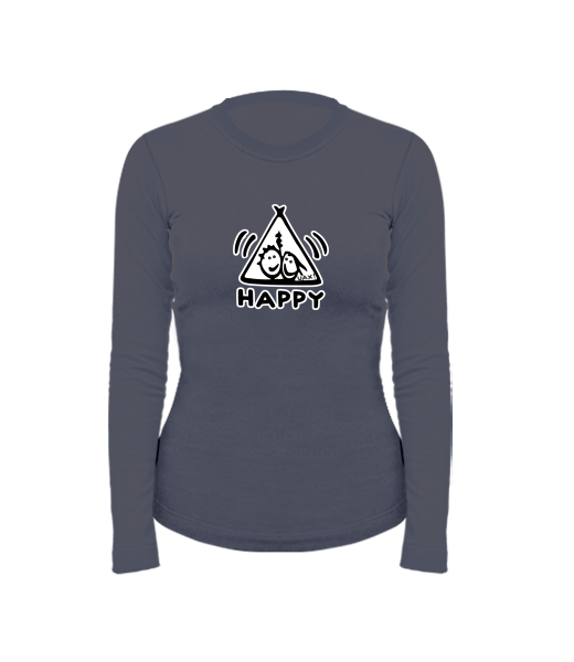 Dámské bavlněné tričko s dlouhým rukávem pro ženy s potiskem 1113 HAPPY v barvě GRAY INK