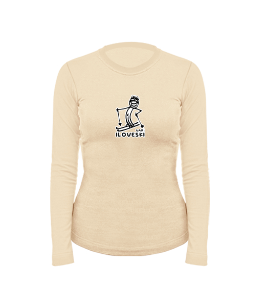 Dámské bavlněné tričko s dlouhým rukávem pro ženy s potiskem 1122 I LOVE SKI v barvě CARAMEL