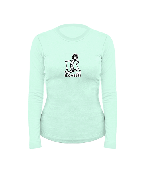 Dámské bavlněné tričko s dlouhým rukávem pro ženy s potiskem 1122 I LOVE SKI v barvě MINT
