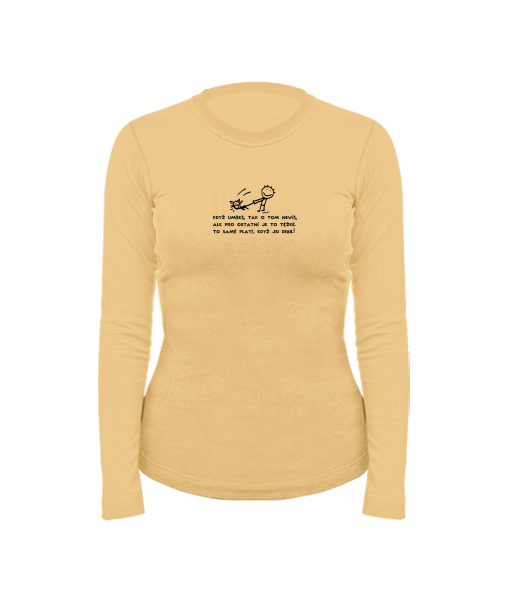 Dámské bavlněné tričko s dlouhým rukávem pro ženy s potiskem 1131 JE TO TĚŽKÉ v barvě MUSTARD