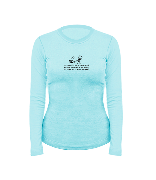 Dámské bavlněné tričko s dlouhým rukávem pro ženy s potiskem 1131 JE TO TĚŽKÉ v barvě PASTEL BLUE