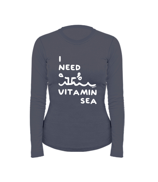 Dámské bavlněné tričko s dlouhým rukávem pro ženy s potiskem 1132 I NEED VITAMIN SEA v barvě GRAY INK