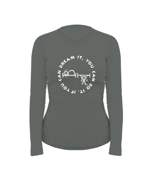 Dámské bavlněné tričko s dlouhým rukávem pro ženy s potiskem 1133 IF YOU CAN DREAM IT v barvě DARK GRAY