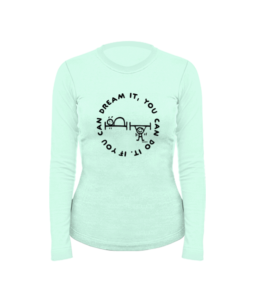 Dámské bavlněné tričko s dlouhým rukávem pro ženy s potiskem 1133 IF YOU CAN DREAM IT v barvě MINT