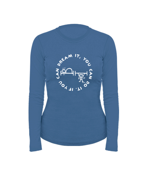 Dámské bavlněné tričko s dlouhým rukávem pro ženy s potiskem 1133 IF YOU CAN DREAM IT v barvě MOONLIGHT BLUE