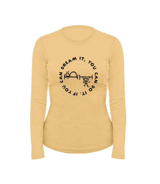 Dámské bavlněné tričko s dlouhým rukávem pro ženy s potiskem 1133 IF YOU CAN DREAM IT v barvě MUSTARD