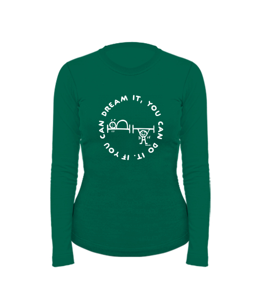 Dámské bavlněné tričko s dlouhým rukávem pro ženy s potiskem 1133 IF YOU CAN DREAM IT v barvě UNIVERSITY GREEN