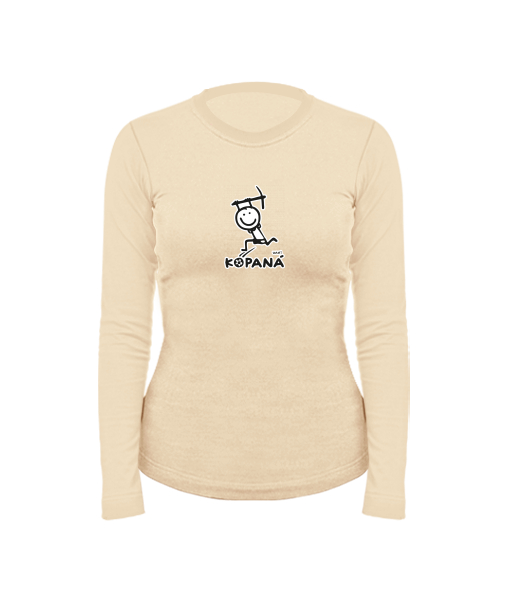 Dámské bavlněné tričko s dlouhým rukávem pro ženy s potiskem 1135 KOPANÁ v barvě CARAMEL