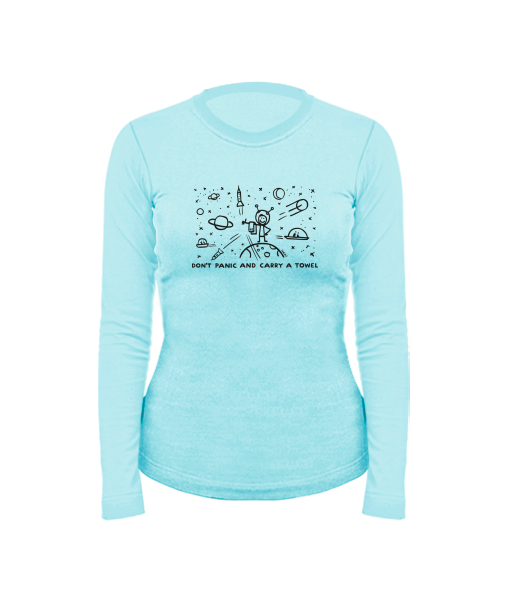 Dámské bavlněné tričko s dlouhým rukávem pro ženy s potiskem 1156 DON'T PANIC GALAXY v barvě PASTEL BLUE