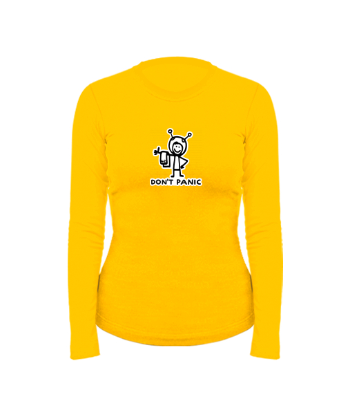 Dámské bavlněné tričko s dlouhým rukávem pro ženy s potiskem 1157 DON'T PANIC v barvě GOLDEN CREAM