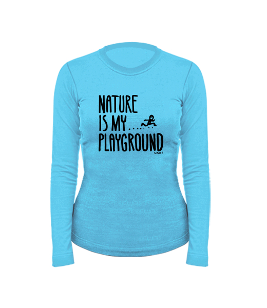 Dámské bavlněné tričko s dlouhým rukávem pro ženy s potiskem 1160 NATURE IS MY PLAYGROUND v barvě BLUE ATOLL
