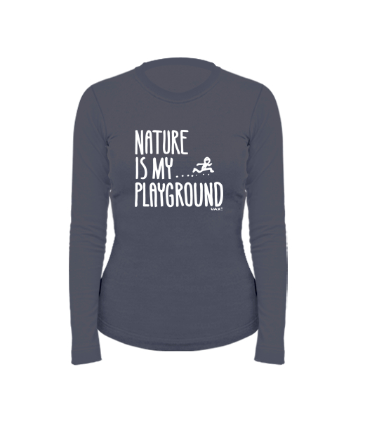 Dámské bavlněné tričko s dlouhým rukávem pro ženy s potiskem 1160 NATURE IS MY PLAYGROUND v barvě GRAY INK