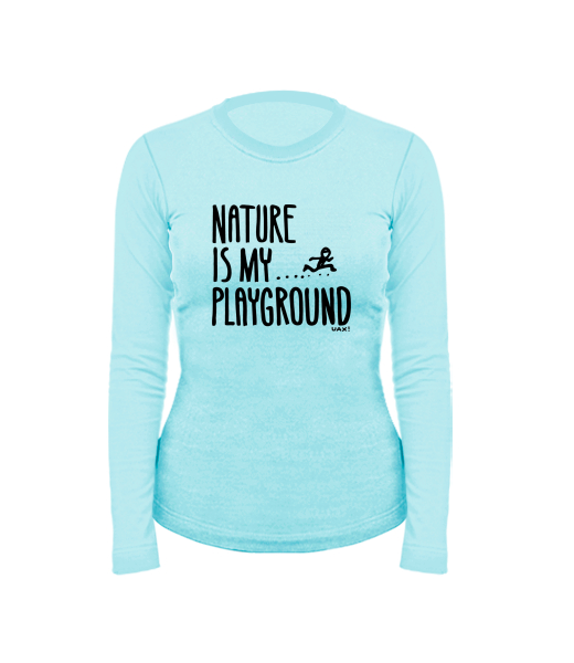 Dámské bavlněné tričko s dlouhým rukávem pro ženy s potiskem 1160 NATURE IS MY PLAYGROUND v barvě PASTEL BLUE