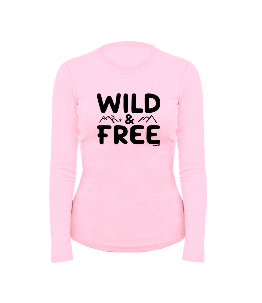 Dámské bavlněné tričko s dlouhým rukávem pro ženy s potiskem 1161 WILD AND FREE v barvě BABY PINK