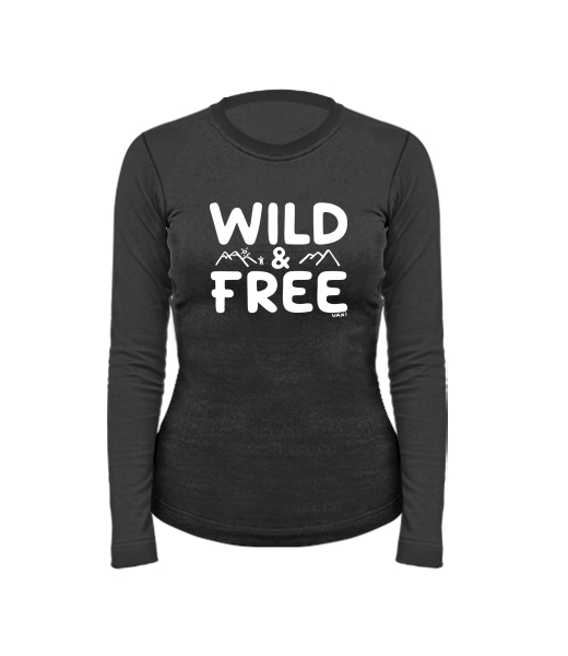 Dámské bavlněné tričko s dlouhým rukávem pro ženy s potiskem 1161 WILD AND FREE v barvě BLACK