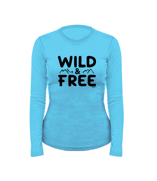 Dámské bavlněné tričko s dlouhým rukávem pro ženy s potiskem 1161 WILD AND FREE v barvě BLUE ATOLL